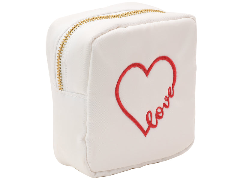 "love" extra small white pouch - personalised embroidered pouch