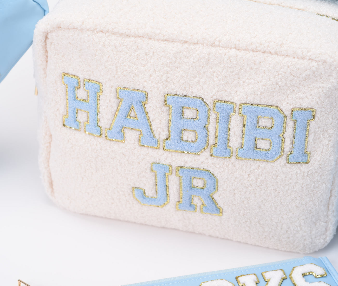 Make a statement with our Cream Teddy Large “HABIBI JR” Pouch. The perfect blend of style and function. With its spacious design, this pouch is ideal for carrying your everyday must haves, from makeup and toiletries to chargers, snacks, or travel essentials.