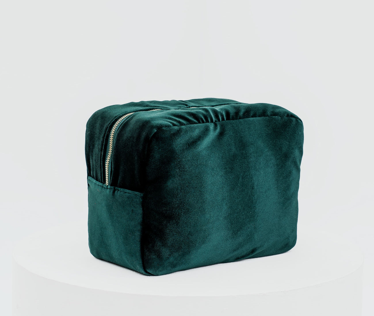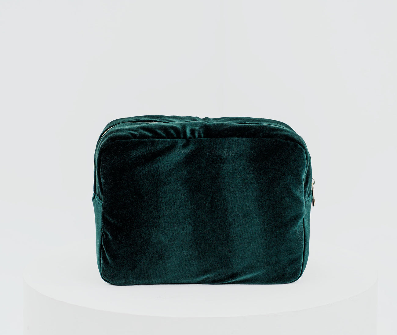 Velvet, Nylon, Zip at the top, Water Proof Lining, Gold Hardware