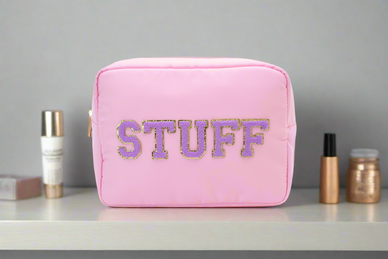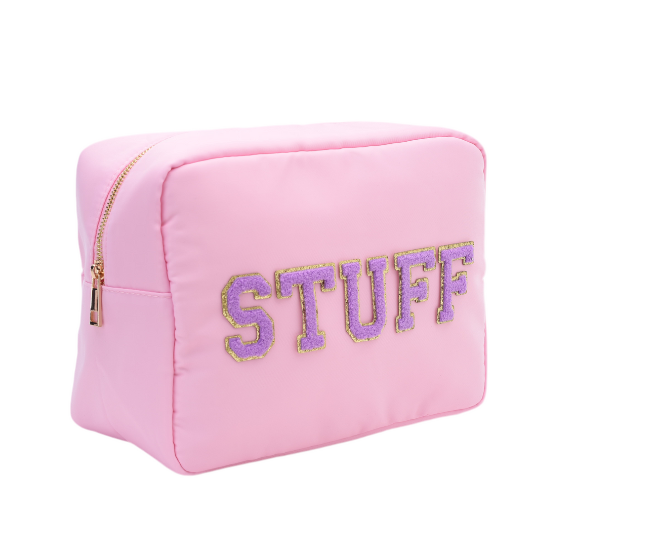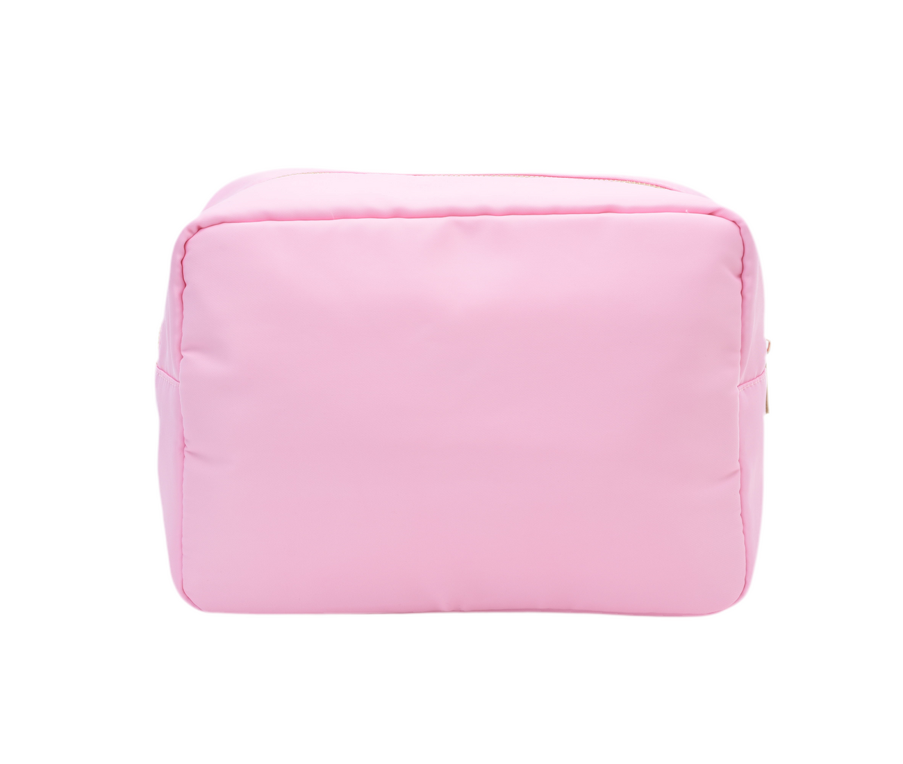 Soft, spacious, and effortlessly chic, this pouch is perfect for makeup, toiletries, tech accessories, or whatever 'stuff' you need to stash. The delicate baby pink hue adds a sweet, feminine touch to your everyday carry or travel essentials.