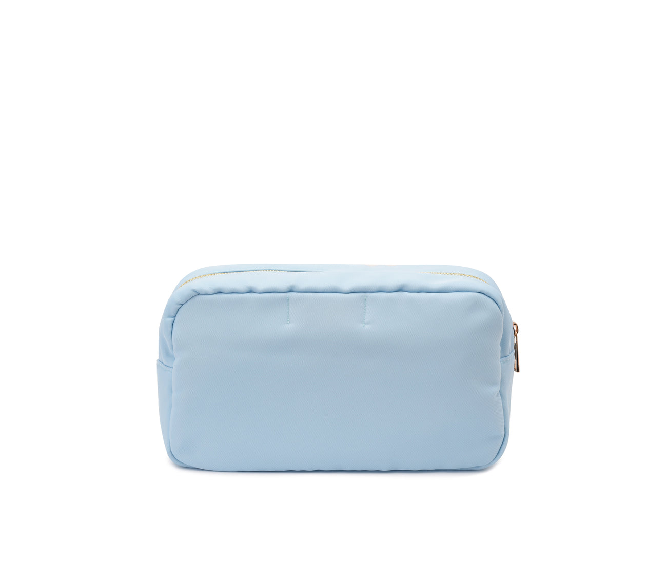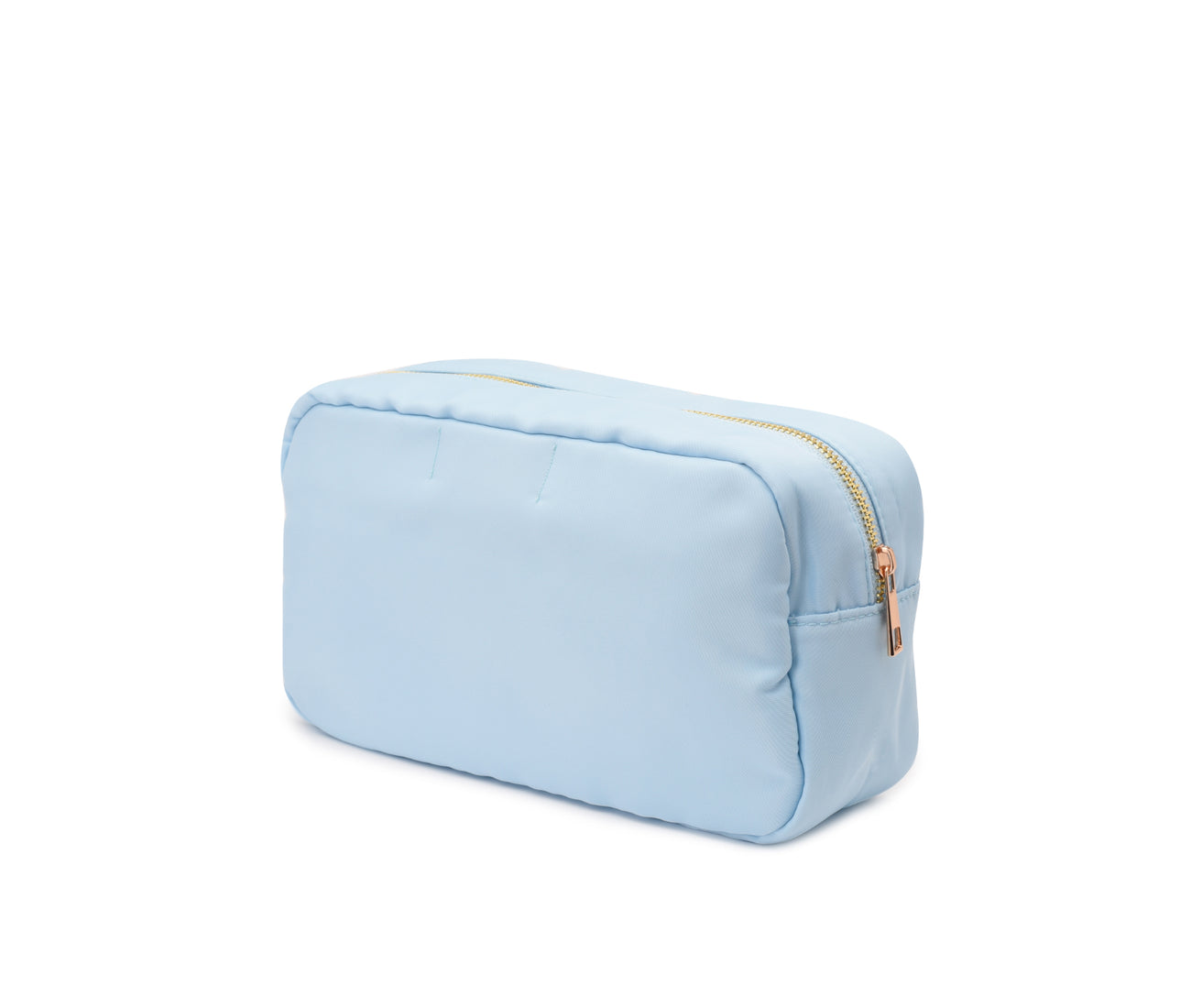 Use it as a makeup bag, snack carrier, charger pouch, or pencil case, its generous size and waterproof lining make it ideal for storing your daily must haves in style. Each pouch features a top zip closure, premium gold hardware, and is beautifully finished with chenille letters that are handmade and stitched on with care and love.