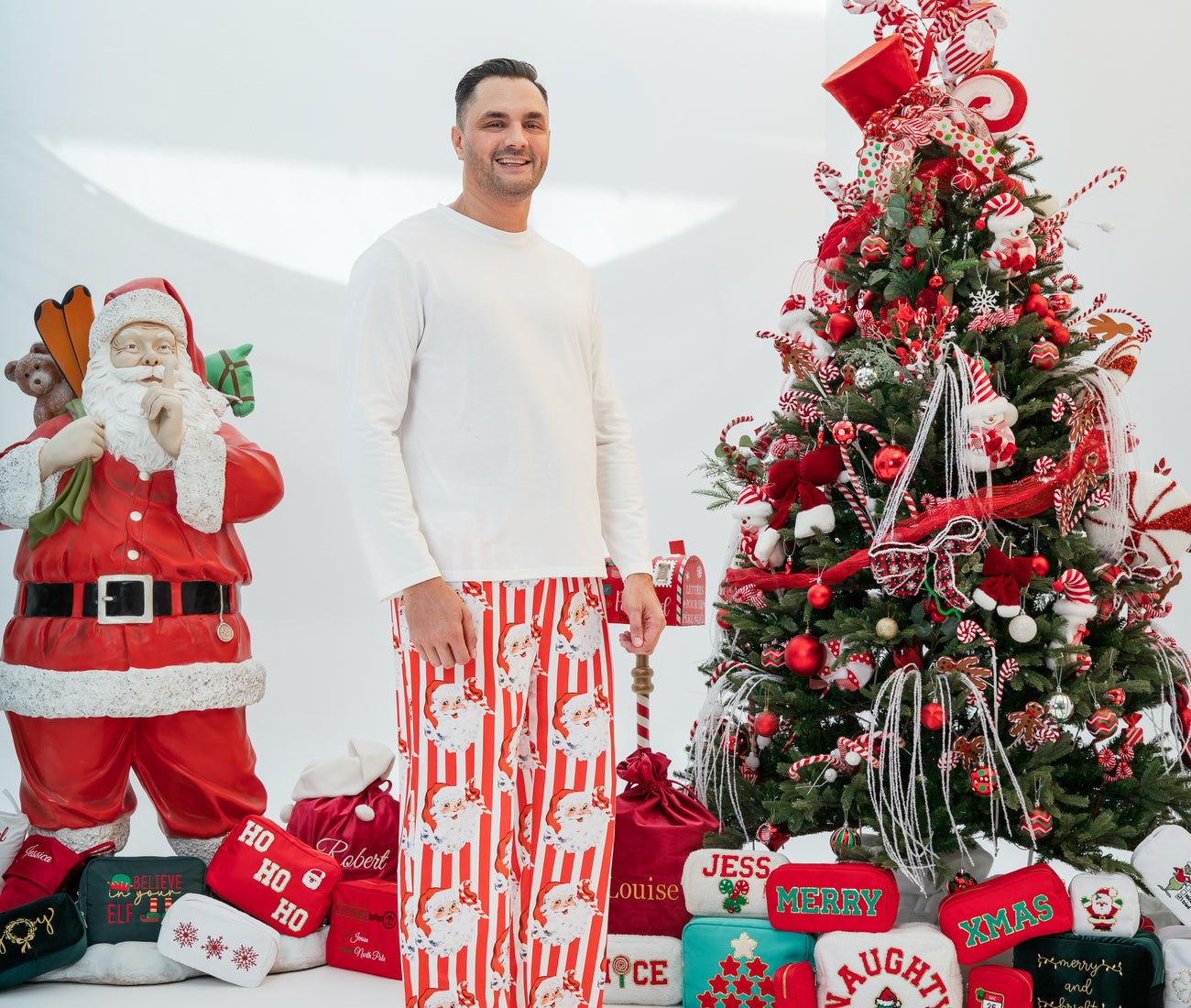 For the Men, Dads, Uncles, Brothers or Boyfriends who like to keep it cool but coordinated – meet the Santa Stripe men's set! With the same Signature Santa print on red candy stripes print as our women’s and mini ranges, this laidback fit is perfect for matching in style (and sneaking in one more mince pie).
