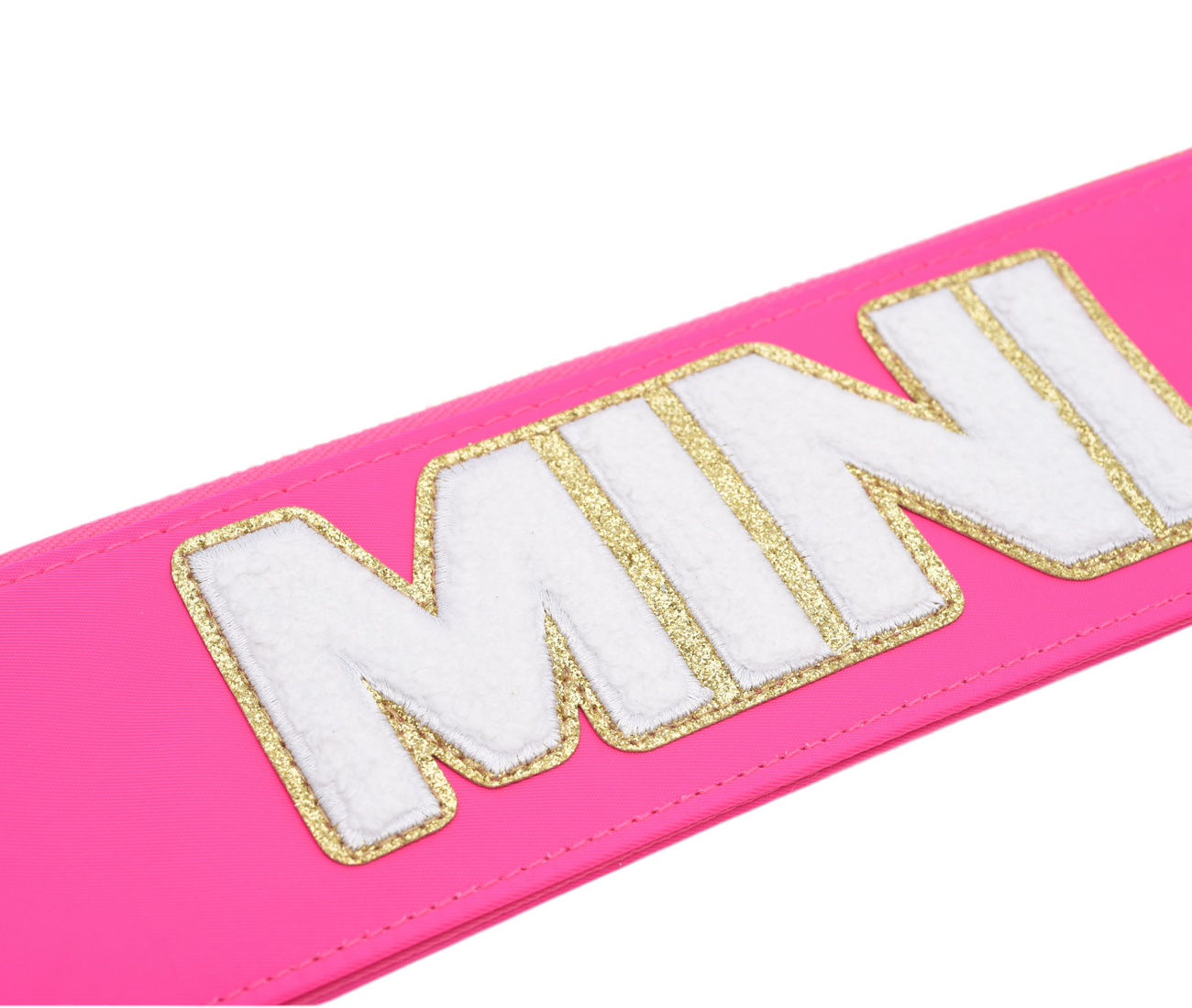 Compact, vibrant, and perfectly personalized—this neon pink mini travel pouch is your go-to for organizing life's little essentials with style.