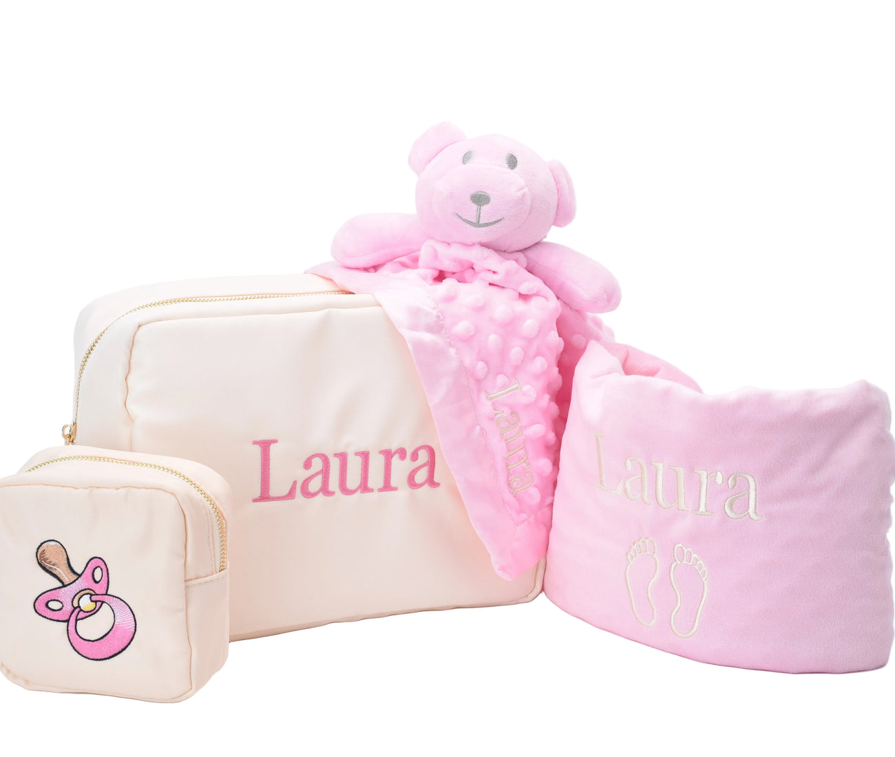 Give the gift of comfort, love, and personalisation with this elegant baby set - where every detail is made to be cherished.