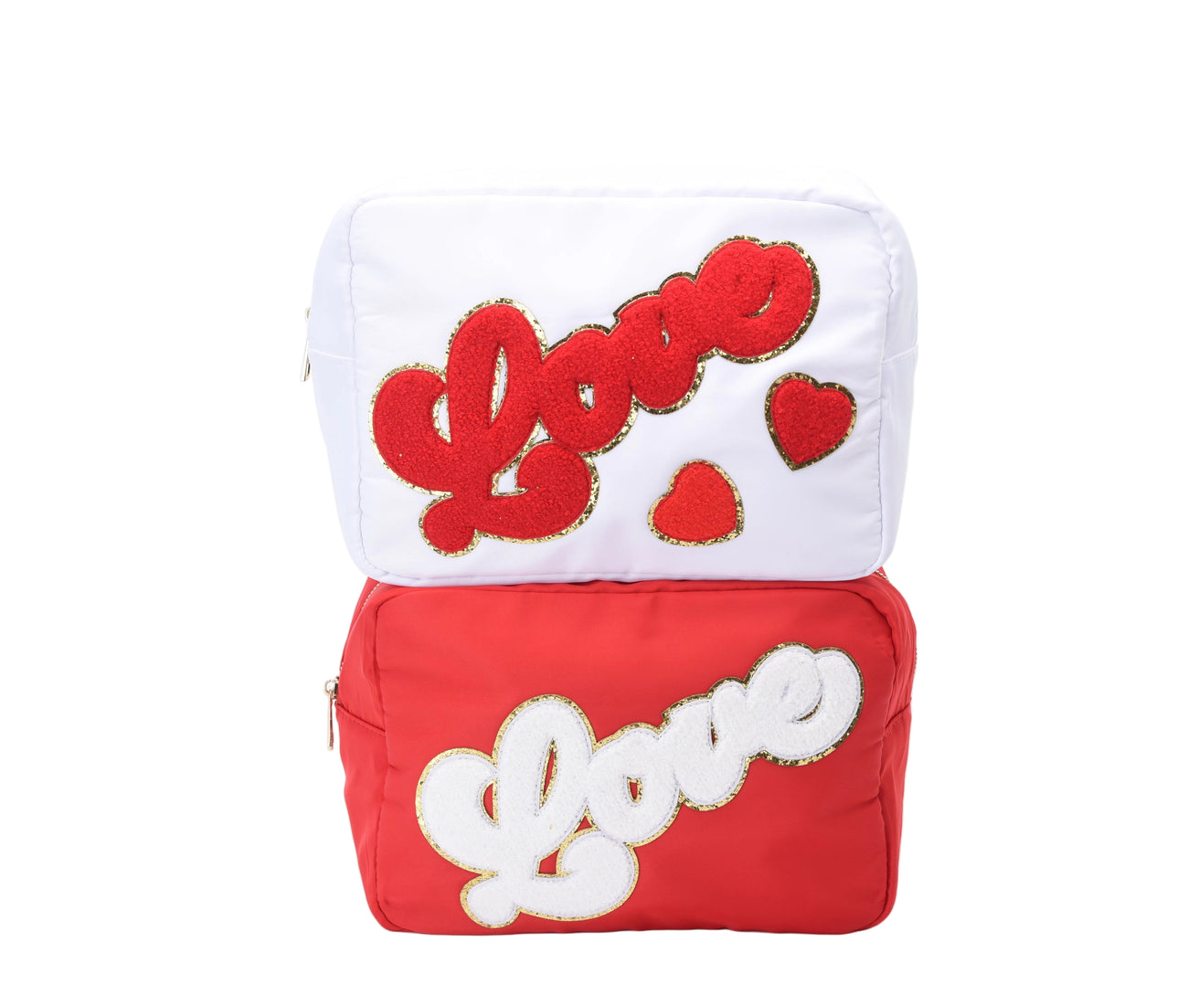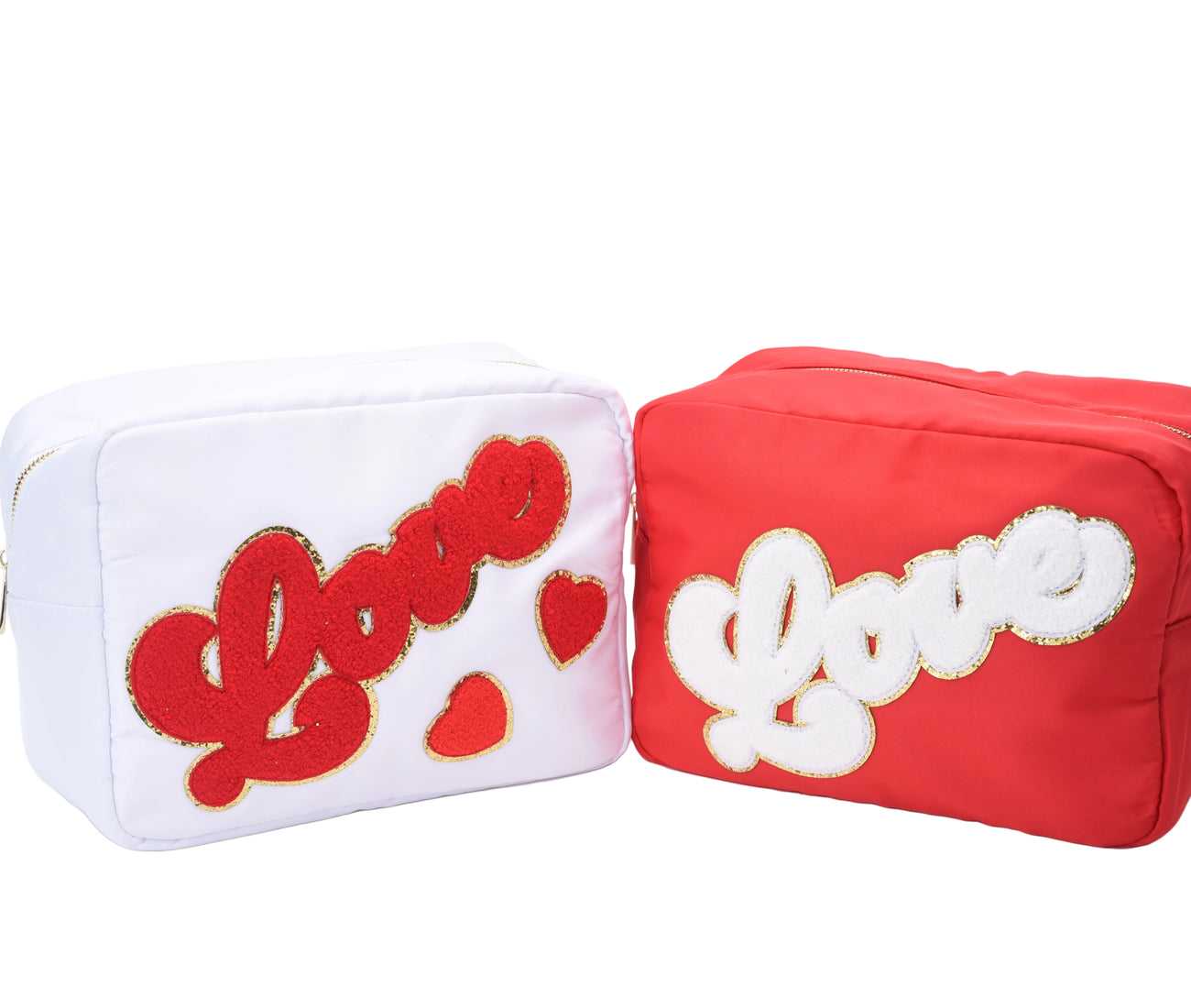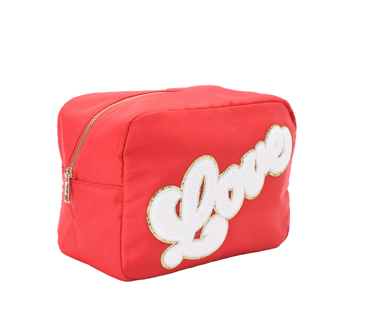 Add a little love to your everyday essentials with our Red Large "Love" Pouch, designed to be both charming and practical. This statement piece combines romantic style with generous storage space for all your beauty and travel needs.