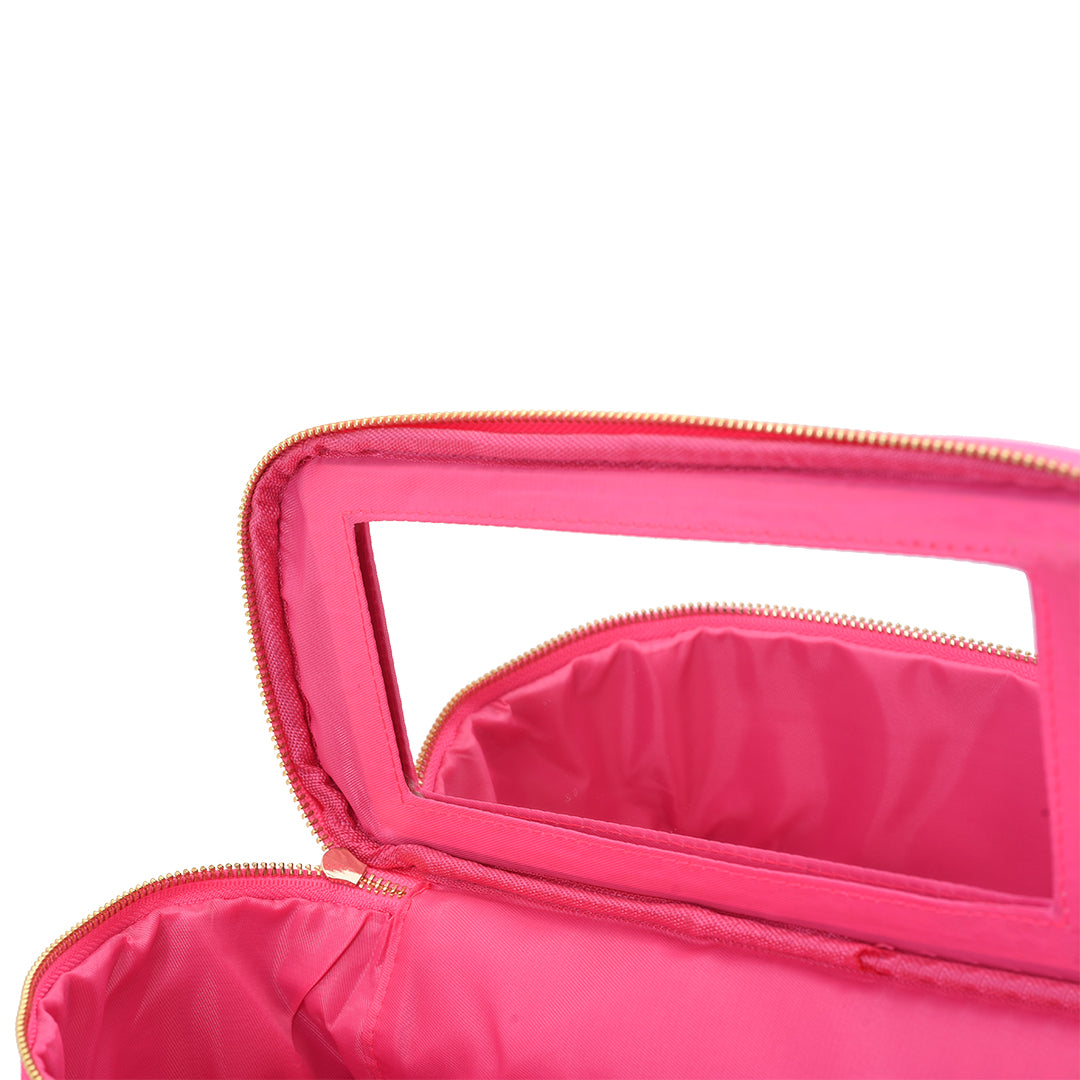 Keep your cosmetics organised and secure with our nylon makeup bag. Constructed with durable material, this bag will keep your essentials safe and protected while you travel. It's lightweight and compact design makes it easy to store and carry around.