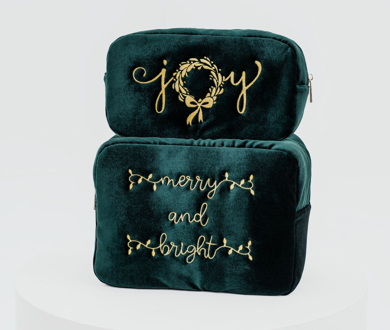 velvet christmas gift set – “merry & bright” + “joy” (large + medium pouch bundle)
