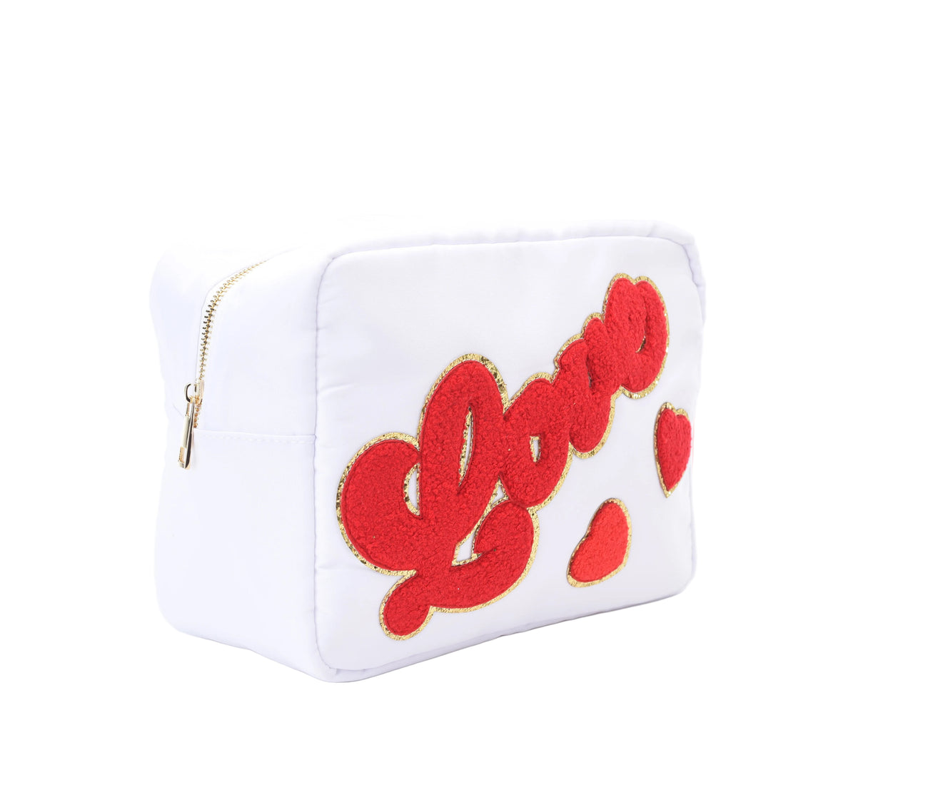 White Large "Love" Pouch - Personalised Embroidered Makeup Bag